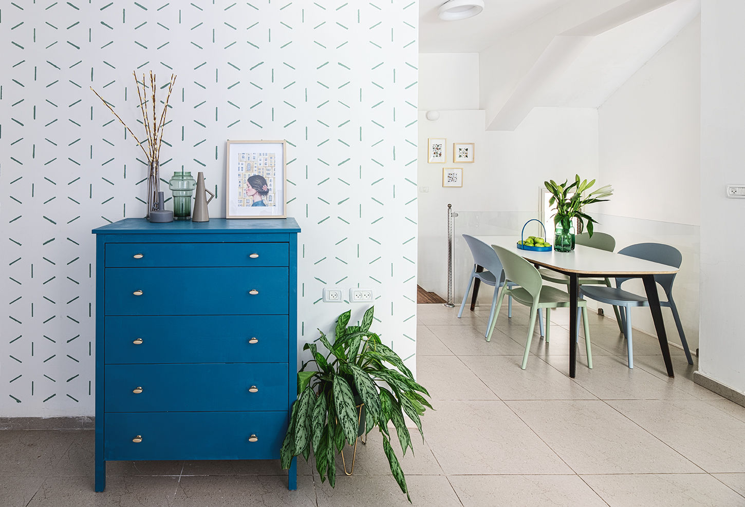 הדירה קושטה בצבעי כחול וירוק לגווניהם לפי בחירת הלקוחות, פלטה רגועה מלאת חמימות ושלווה.